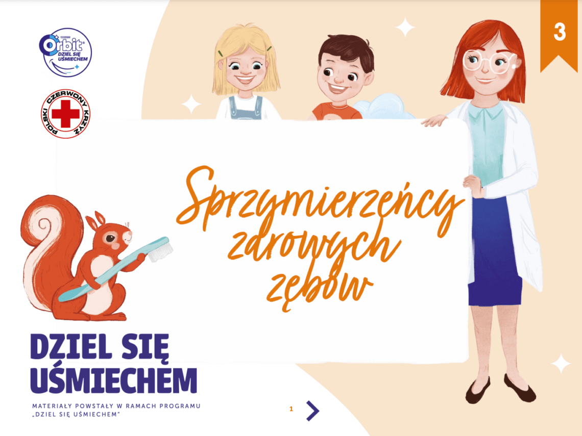 Dzieci dowiedzą się, kim są naturalni sprzymierzeńcy zdrowych zębów: fluor, dieta i ślina. Omówiona jest również rola profilaktyki, a także związek codziennej diety ze zdrowiem zębów.