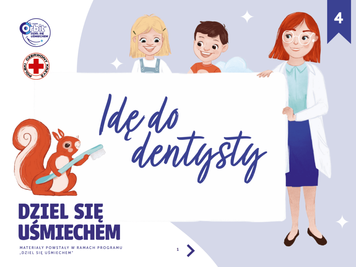 Ciekawa dwuminutowa animacja wideo przeznaczona dla dzieci z zerówki i klas 1-3, która w przyjazny sposób przedstawi i pomoże utrwalić 4 kroki dla zdrowych i czystych zębów.